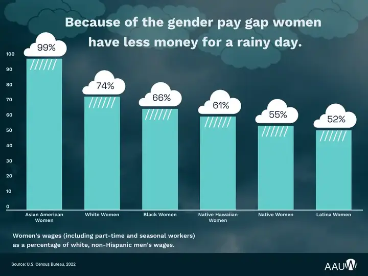 وفقًا لمكتب الإحصاء الأمريكي، في عام 2023، حصلت النساء على ما يقرب من 82 سنتاً مقابل كل دولار يكسبه الرجال. ومع ذلك، يمكن أن يختلف هذا الرقم الإجمالي بشكل كبير حسب الصناعة ونوع الوظيفة والمؤهلات.