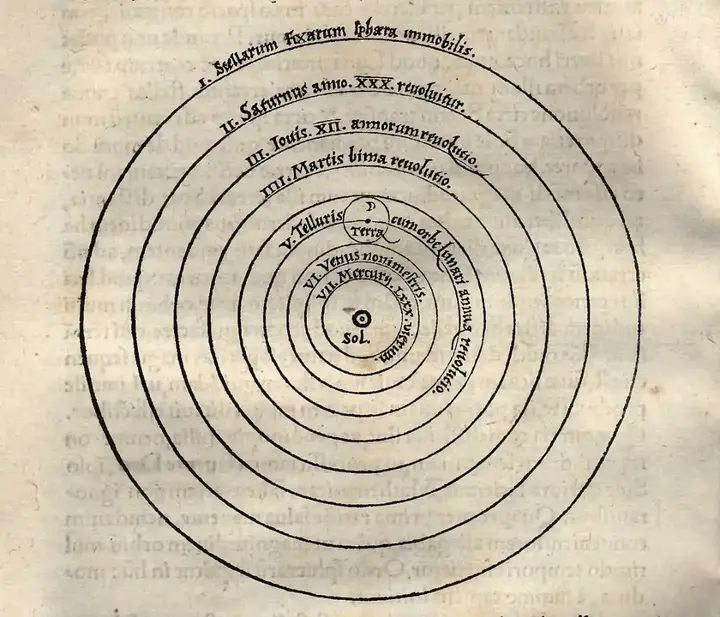 كان حجر الزاوية في مساهمات كوبرنيكوس في العلوم هو نموذجه الثوري للكون. وعلى عكس النموذج البطلمي السائد، والذي أكد على أن الأرض هي المركز الثابت للكون، جادل كوبرنيكوس بأن الأرض والكواكب الأخرى تدور حول الشمس.