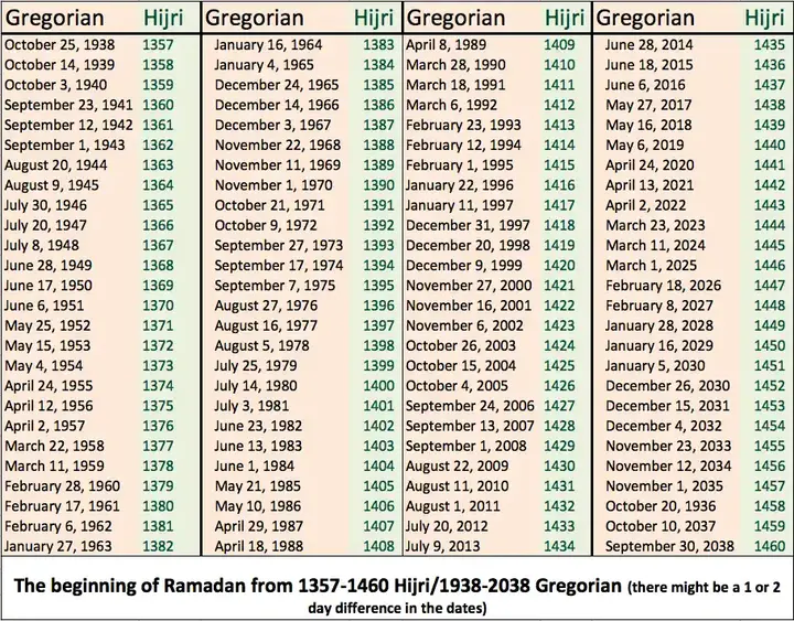 يعتمد التقويم الهجري على الدورة القمرية، حيث تبدأ الأشهر عند رؤية الهلال الجديد. يعتمد تحديد بداية كل شهر إسلامي على رؤية الهلال، والذي يمكن أن يختلف باختلاف عوامل مثل الموقع الجغرافي، والظروف الجوية، وصفاء السماء. يمكن أن يؤدي هذا التباين في ممارسات رؤية القمر في بعض الأحيان إلى تناقضات في تواريخ بدء الأشهر الإسلامية بين المجتمعات الإسلامية المختلفة