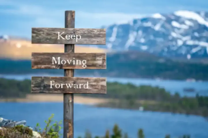المضي قدماً: يشير المضي قدماً إلى اتخاذ خطوات، مهما كانت صغيرة، نحو هدف أو في اتجاه إيجابي. إنه جهد مستمر للتحسين والتكيّف والتقدم، حتى لو لم تكن التغييرات ملحوظة على الفور.