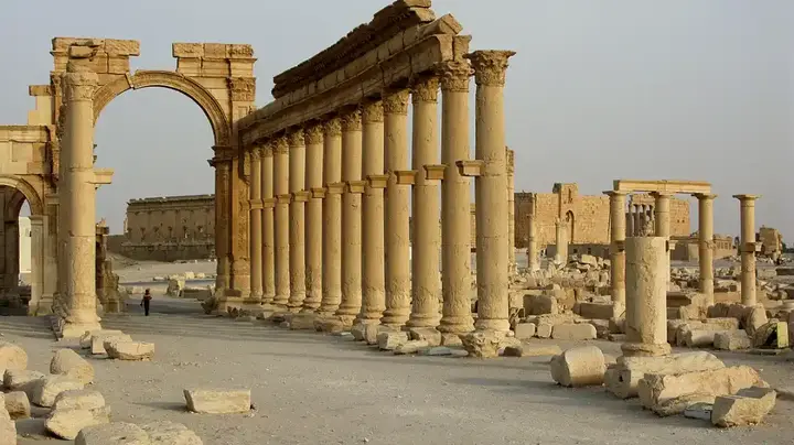 تقع مدينة تدمر القديمة في قلب الصحراء السورية، وهي شاهد على عظمة وتنوع الحضارات الإنسانية التي ازدهرت ذات يوم في هذه المنطقة. تُعرف هذه المدينة الواحة باسم "لؤلؤة الصحراء السورية"، وكانت جسرًا جميلًا بين الشرق والغرب. كانت مدينة على مفترق طرق الحضارات، مدينة نمت من قرية متواضعة إلى مدينة كبرى في العالم القديم. في عام 267 م، قادت الملكة زنوبيا مدينة تدمر في ثورة ضد الرومان؛ وقد نالت المدينة استقلالها لفترة وجيزة، لكن الإمبراطور أوريليان نهبها بعد خمس سنوات.